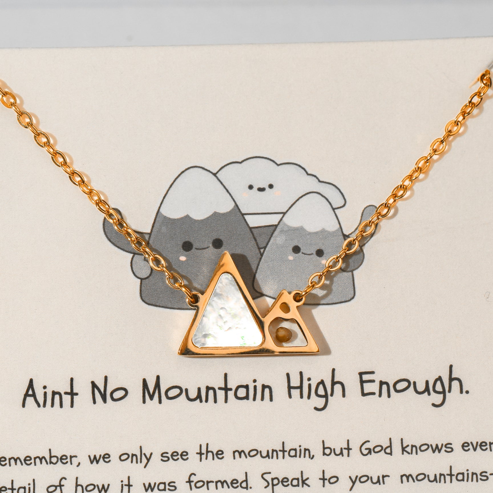 This necklace beautifully displays a powerful verse from Matthew 17:20. Showing that with faith, no mountain is too high!
