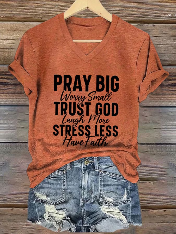 Women's Casual Christian Faith Graphic Print V-Neck Short Sleeve T-Shirt