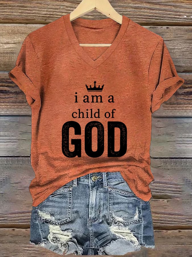 Women's Casual Christian Faith Graphic Print V-Neck Short Sleeve T-Shirt