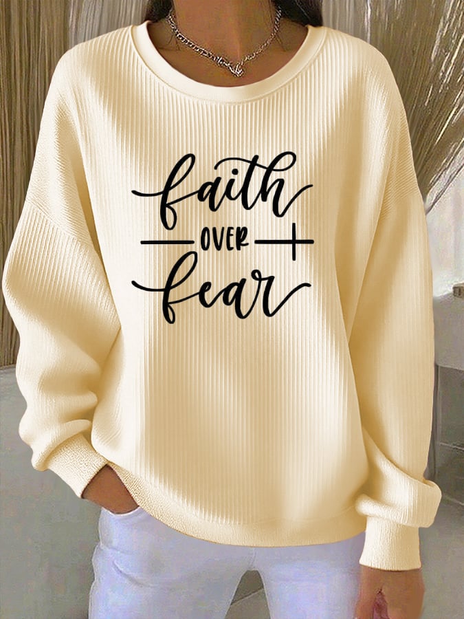 Women's Casual Faith Overcomes Fear Textured Sweatshirt