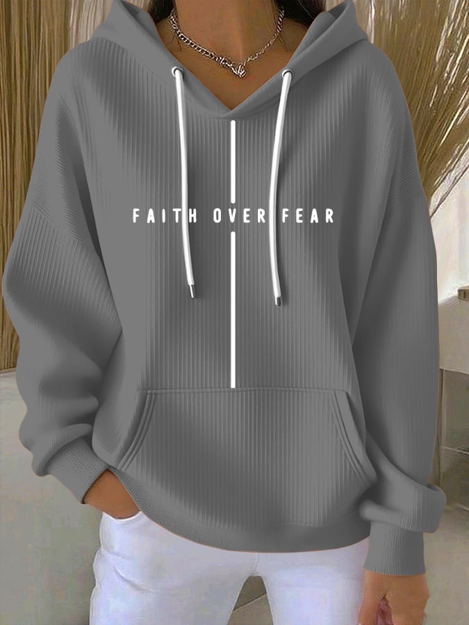Women's Vintage Faith Faith Over Fear Printed Casual Ribbed Hoodie